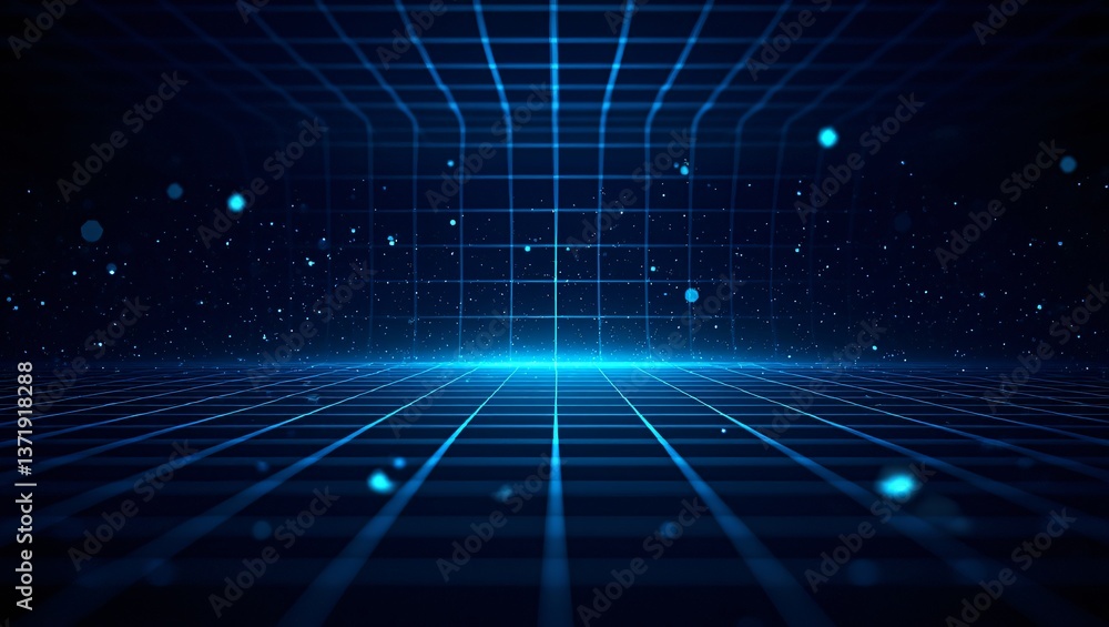 Wall mural abstract futuristic grid background with glowing particles and cyberspace design