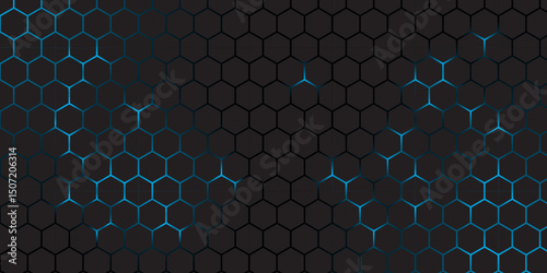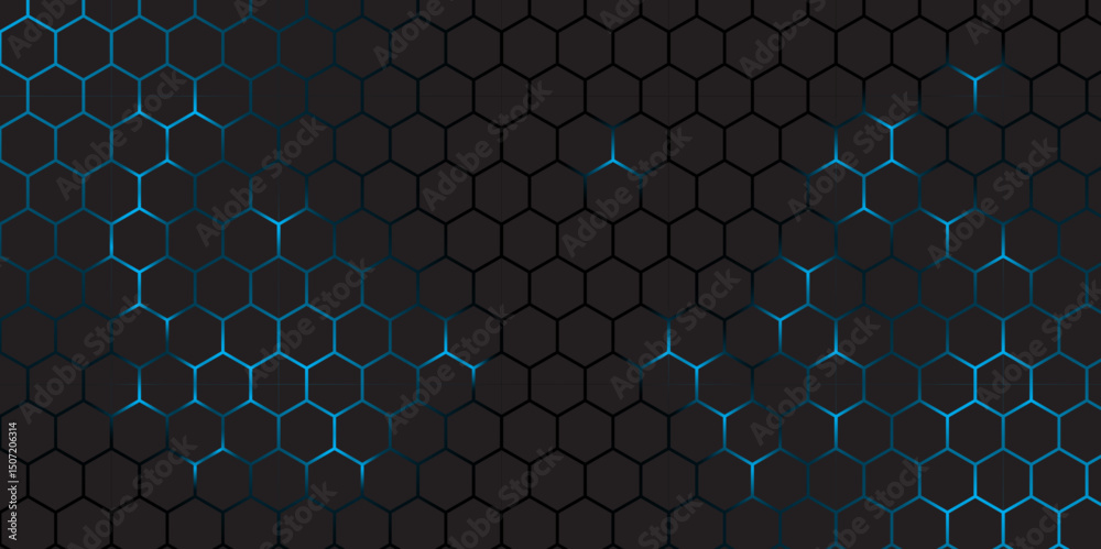Wall mural abstract futuristic hexagon grid background in blue and black. abstract tech honeycomb pattern with  - Wall murals Wall mural abstract futuristic hexagon grid background in blue and black. abstract tech honeycomb pattern with - Wall murals