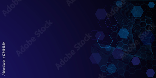 Wall mural abstract futuristic hexagons for network connection, wave background for science, computer and commu