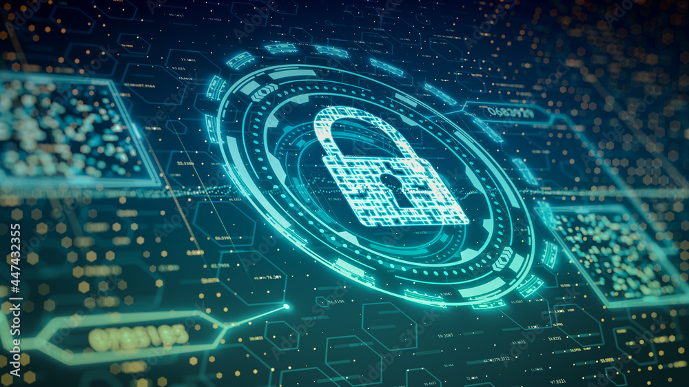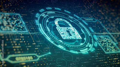 Wall mural abstract futuristic interface with a circular hud and a padlock, concept of computer and internet se