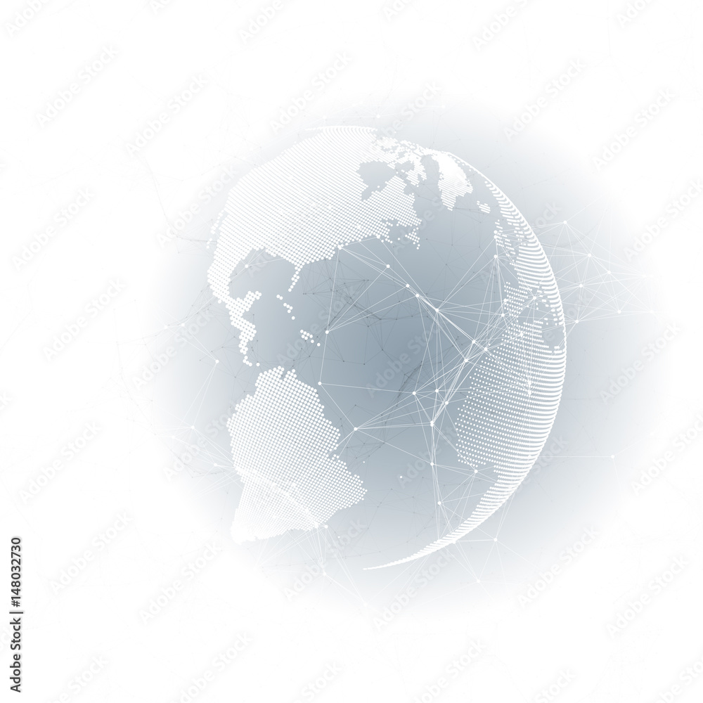The watermark will not be included on Wall mural.: Abstract futuristic network shapes - high tech hud background, connecting lines and dots, polygonal l