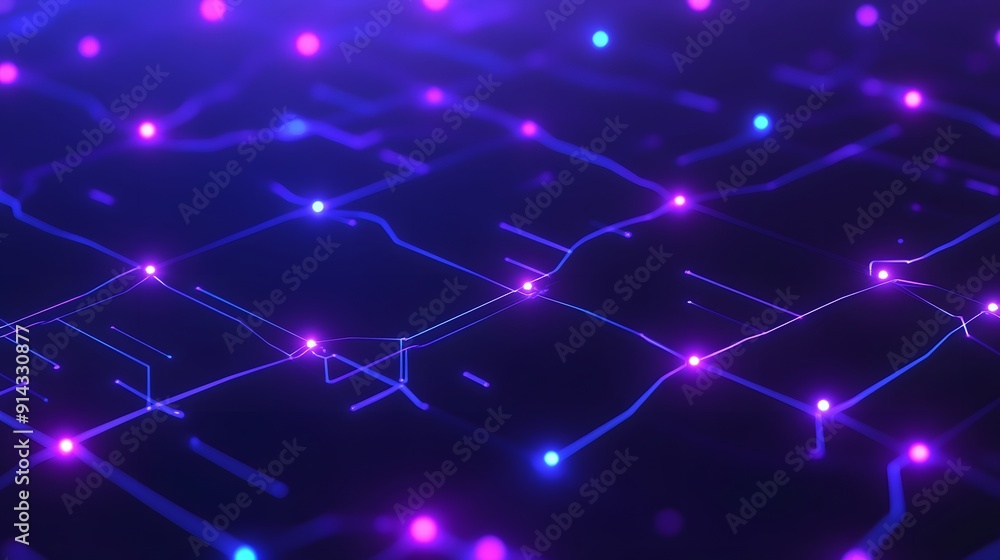 Wall mural : Abstract futuristic network with glowing purple and blue lights depicting tech and data concepts -