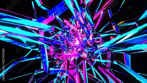 Wall mural : Abstract futuristic scene with vibrant neon colors illuminating sharp crystal-like structures in a d