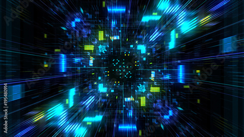 Wall mural abstract futuristic sci fi warp tunnel with particle grid. graphic for data center, server, internet - Wall murals Wall mural abstract futuristic sci fi warp tunnel with particle grid. graphic for data center, server, internet - Wall murals