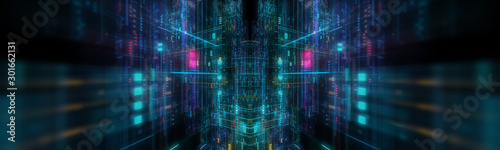 Wall mural abstract futuristic technological background, floating circuits, charts, digits elements. nano chip