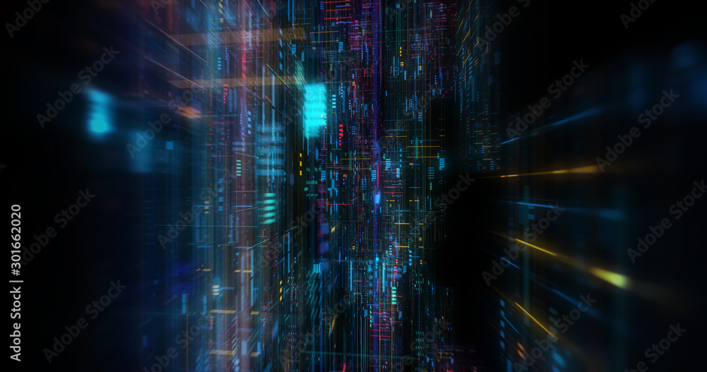 Wall mural : Abstract futuristic technological background, floating circuits, charts, digits elements - nano chip