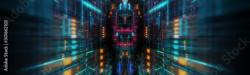 Wall mural abstract futuristic technological background, floating circuits, charts, digits elements. nano chip