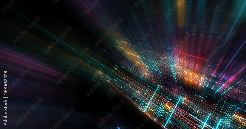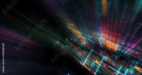 Wall mural : Abstract futuristic technological background, floating circuits, charts, digits elements - nano chip