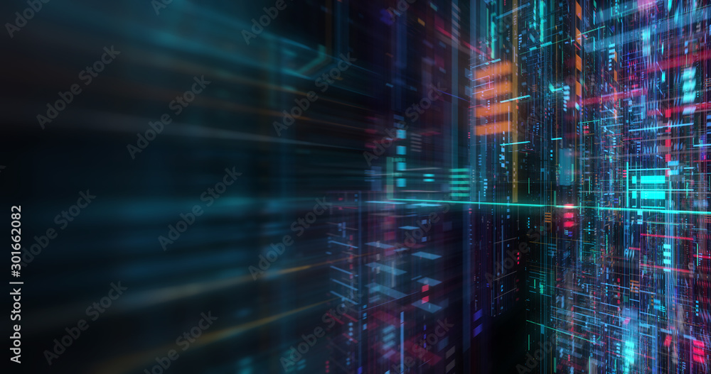 The watermark will not be included on Wall mural.: Abstract futuristic technological background, floating circuits, charts, digits elements - nano chip