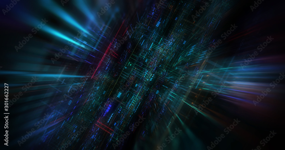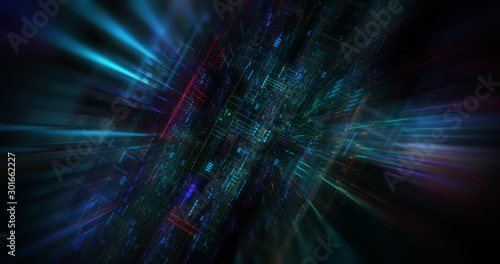 Wall mural abstract futuristic technological background, floating circuits, charts, digits elements. nano chip