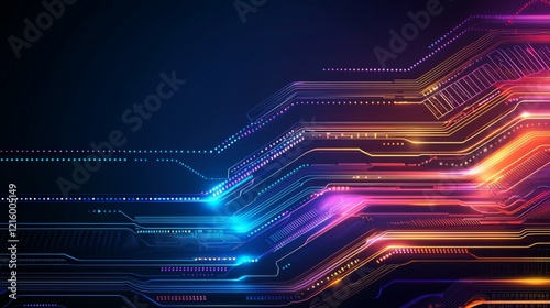 Wall mural : Abstract futuristic technology background glowing circuit board design with neon lines and dots