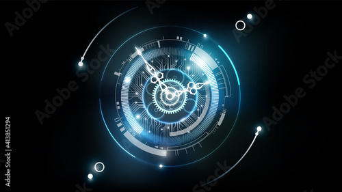 Wall mural abstract futuristic technology background with clock concept and time machine, can rotate clock hand
