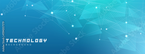 Wall mural : Abstract futuristic technology background with geometric shapes, data connection lines - shining tech