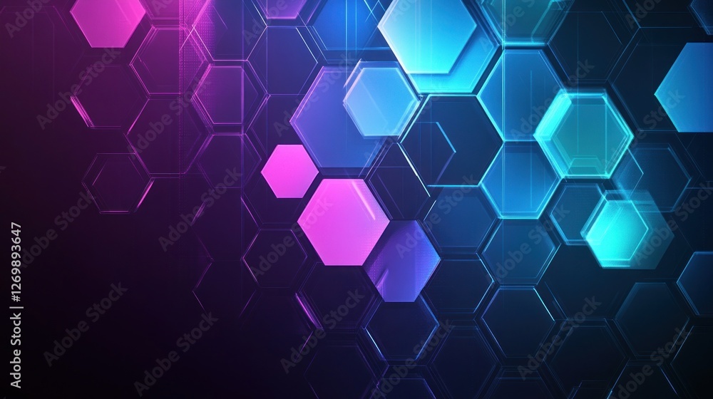 Wall mural : Abstract futuristic technology background with glowing hexagonal shapes