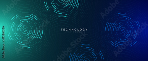 Wall mural abstract futuristic technology lines background with green and blue light effect. glowing circle lin
