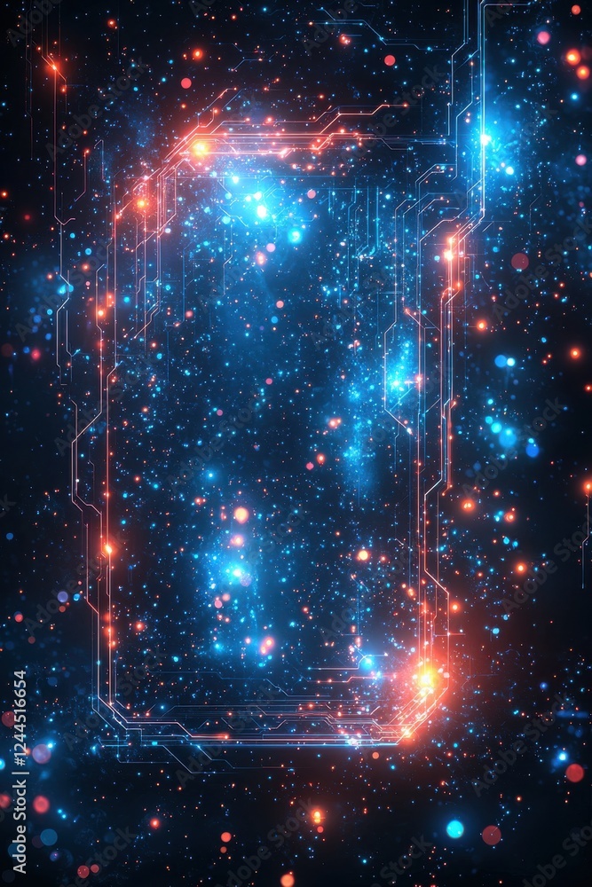 Wall mural abstract futuristic technology science background with glowing circuits and particles