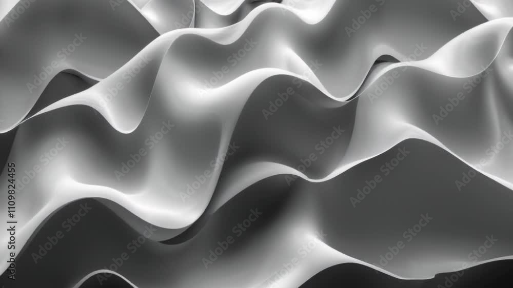 The watermark will not be included on Wall mural.: Abstract futuristic wallpaper with dynamic black and white wave pattern - lines create movement and t