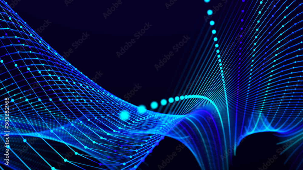 Wall mural : Abstract futuristic wave background - network connection dots and lines - digital background - 3d rende