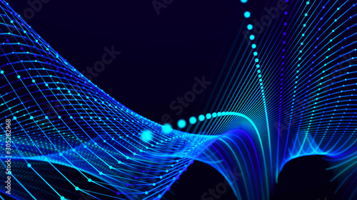 The watermark will not be included on Wall mural.: Abstract futuristic wave background - network connection dots and lines - digital background - 3d rende