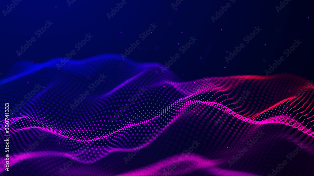The watermark will not be included on Wall mural.: Abstract futuristic wave background - network connection dots and lines - digital background - 3d rende