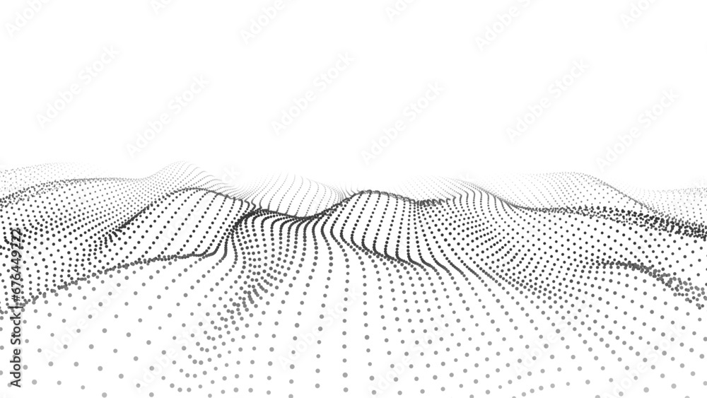 The watermark will not be included on Wall mural.: Abstract futuristic wave of black dots moving on a white background - big data - 3d rendering