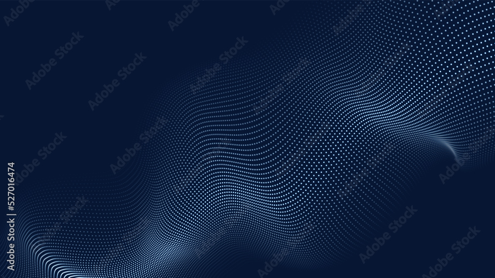 Abstract futuristic wave with moving dots - flow of particles - vector cyber technology illustration - Wall mural