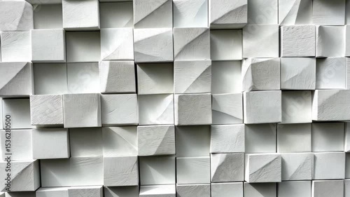 The watermark will not be included on Wall mural.: Abstract geometric arrangement of white cubic blocks creating a modern texture and design, white cub