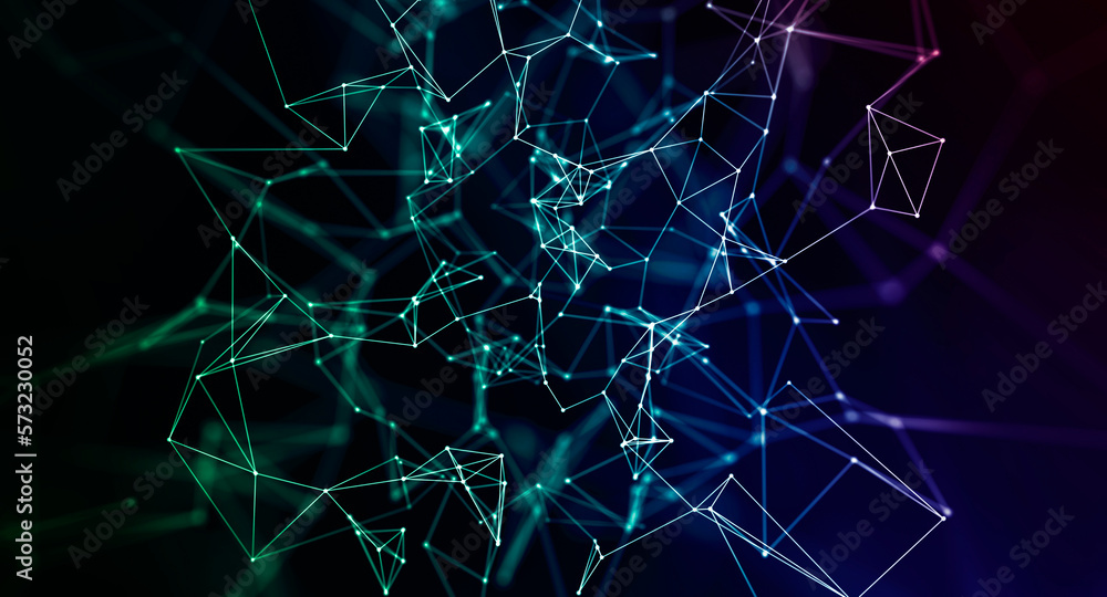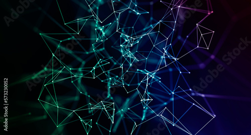 The watermark will not be included on Wall mural.: Abstract geometric background blue and green with triangular cells for design and with broken,