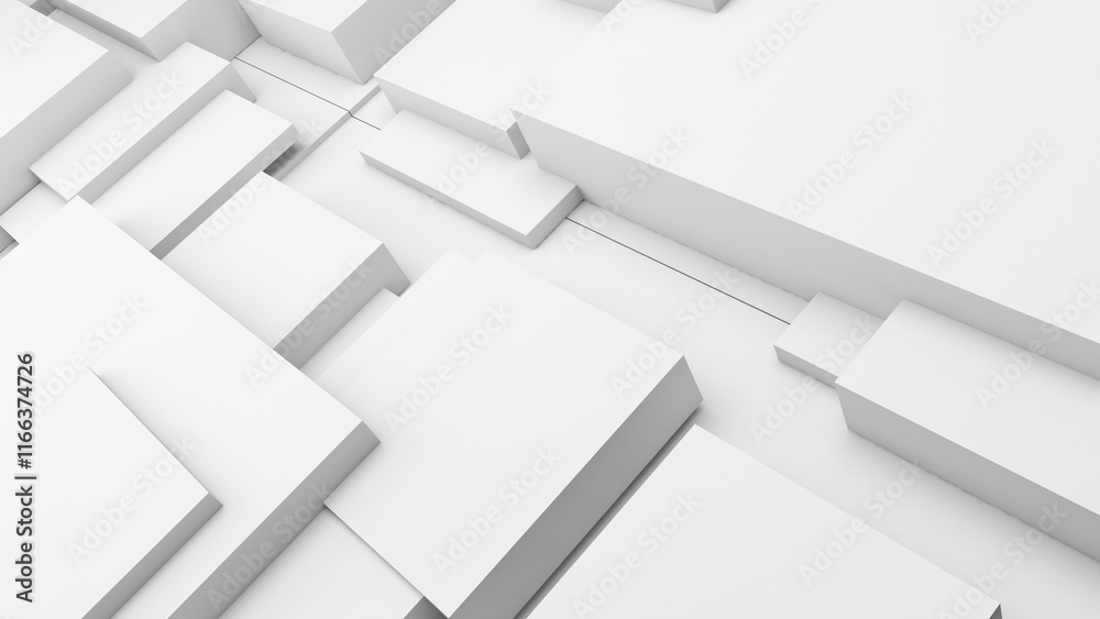 Wall mural abstract geometric background shapes white square in relief, both high and low used to add different