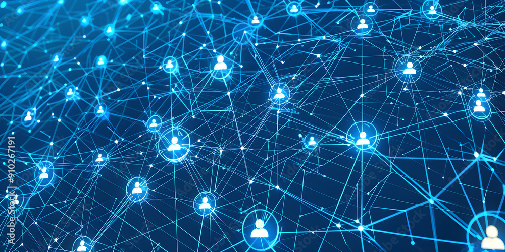 Wall mural abstract geometric background with many people icons. blue background visualizing social networks or - Wall murals Wall mural abstract geometric background with many people icons. blue background visualizing social networks or - Wall murals
