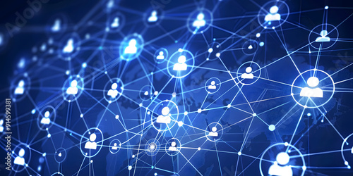Wall mural abstract geometric background with many people icons. blue background visualizing social networks or - Wall murals Wall mural abstract geometric background with many people icons. blue background visualizing social networks or - Wall murals