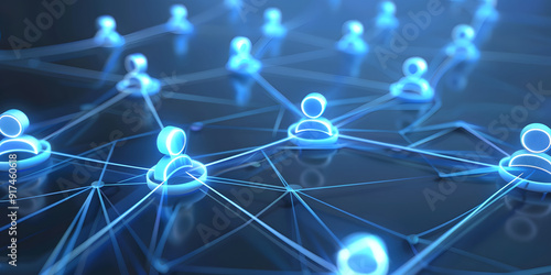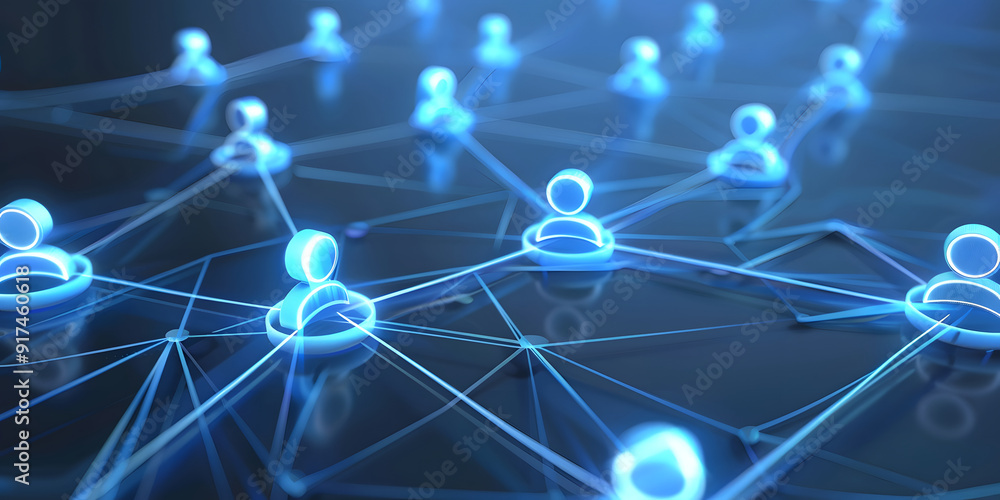 Wall mural abstract geometric background with many people icons. blue background visualizing social networks or - Wall murals Wall mural abstract geometric background with many people icons. blue background visualizing social networks or - Wall murals