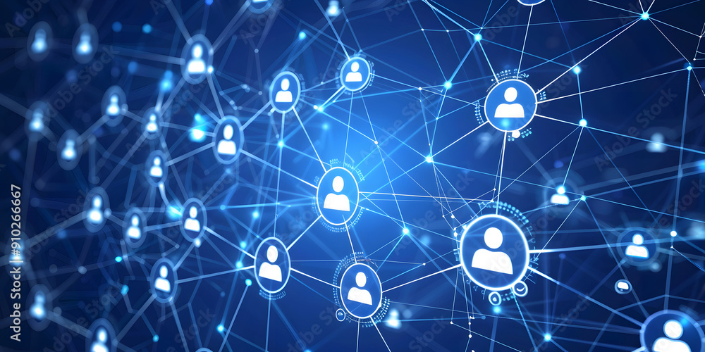 Wall mural abstract geometric background with many people icons. blue background visualizing social networks or - Wall murals Wall mural abstract geometric background with many people icons. blue background visualizing social networks or - Wall murals