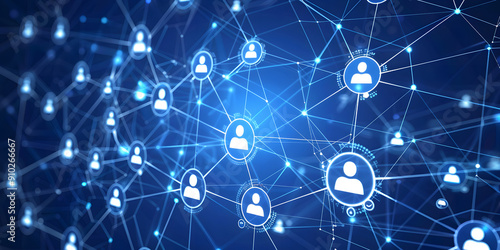 Wall mural abstract geometric background with many people icons. blue background visualizing social networks or