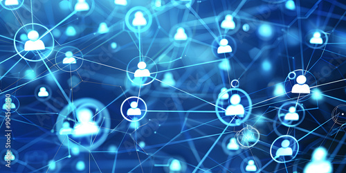 Wall mural abstract geometric background with many people icons. blue background visualizing social networks or - Wall murals Wall mural abstract geometric background with many people icons. blue background visualizing social networks or - Wall murals