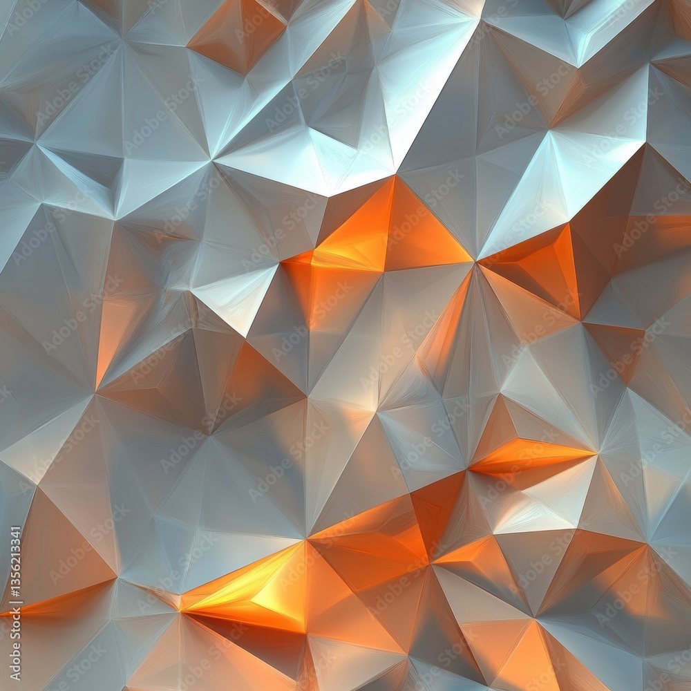 The watermark will not be included on Wall mural.: Abstract geometric background with triangular facets in shades of blue and orange, creating a modern