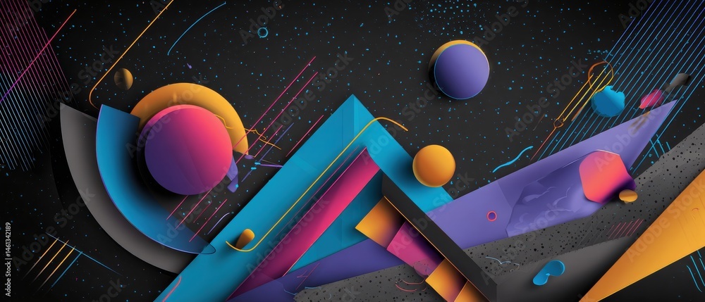 Wall mural abstract geometric background with vibrant colors and dynamic shapes in a modern design, creating a