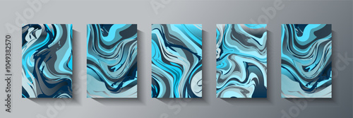 The watermark will not be included on Wall mural.: Abstract geometric background - liquid dynamic gradient color waves - fluid marble texture set - designs