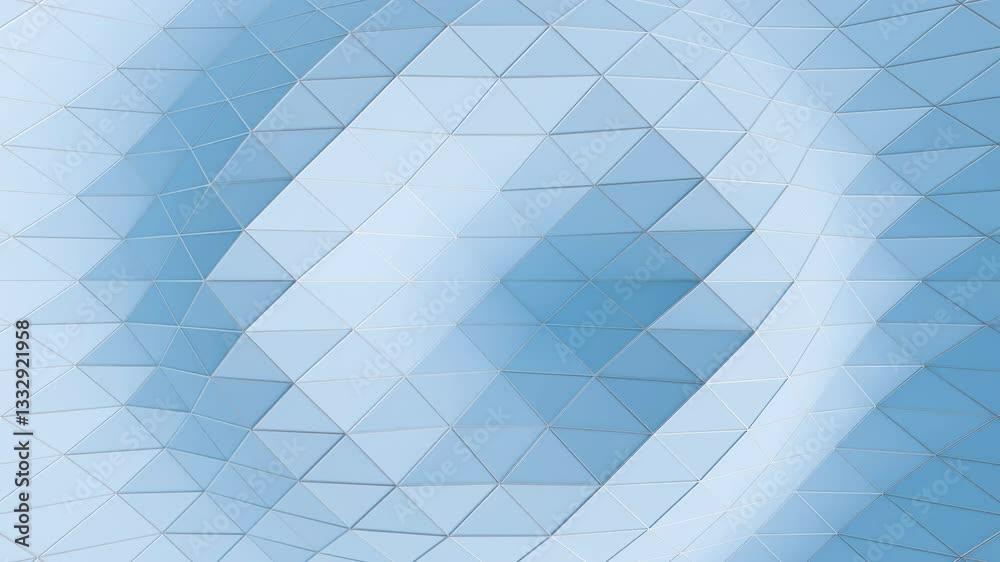 The watermark will not be included on Wall mural.: Abstract geometric blue 3d triangles pattern background, 4k seamless loop, animated wave motion poly