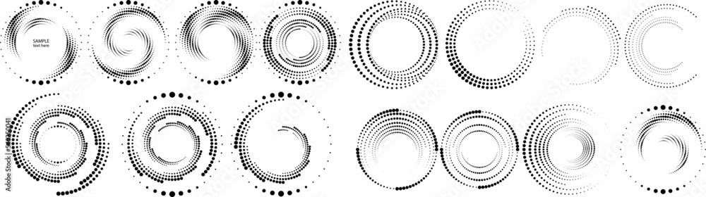Wall mural abstract geometric circles with halftone dots. vector rotating dotted line design . transparent desi
