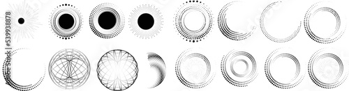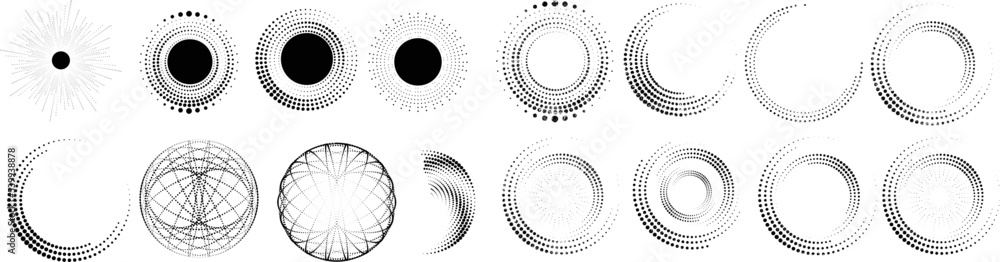 Wall mural abstract geometric circles with halftone dots. vector rotating dotted line design . transparent desi