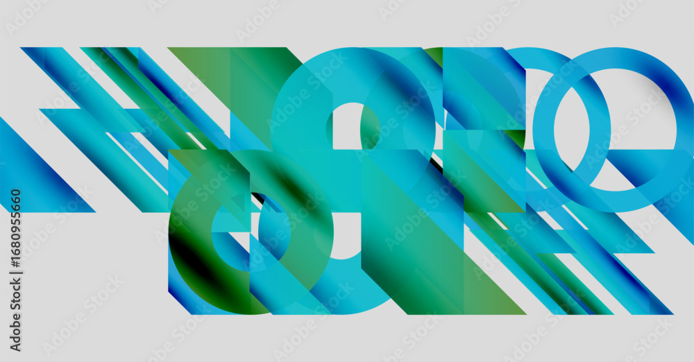 Wall mural abstract geometric composition. blue, green hues blend, creating dynamic visual effect. shapes overl
