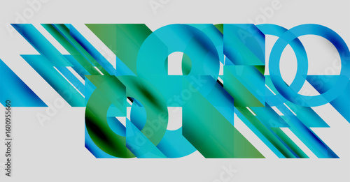 The watermark will not be included on Wall mural.: Abstract geometric composition - blue, green hues blend, creating dynamic visual effect - shapes overl