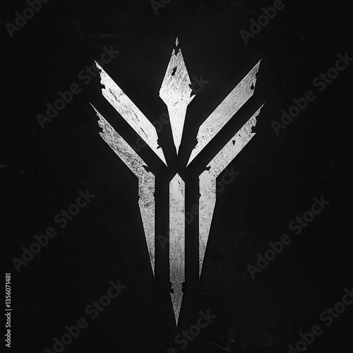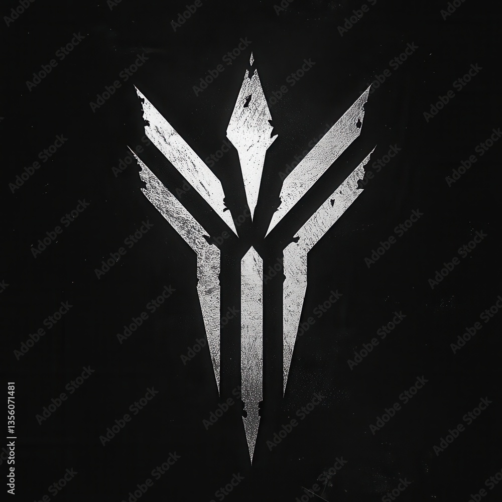 The watermark will not be included on Wall mural.: Abstract geometric design featuring sharp angles and contrasting textures in a monochromatic color s