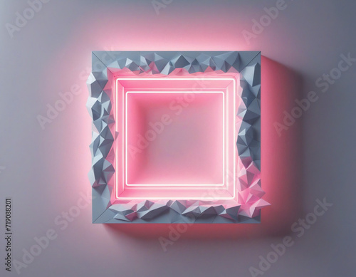The watermark will not be included on Wall mural.: Abstract geometric design with neon square frame and glowing stormy cloud in pink and blue light -