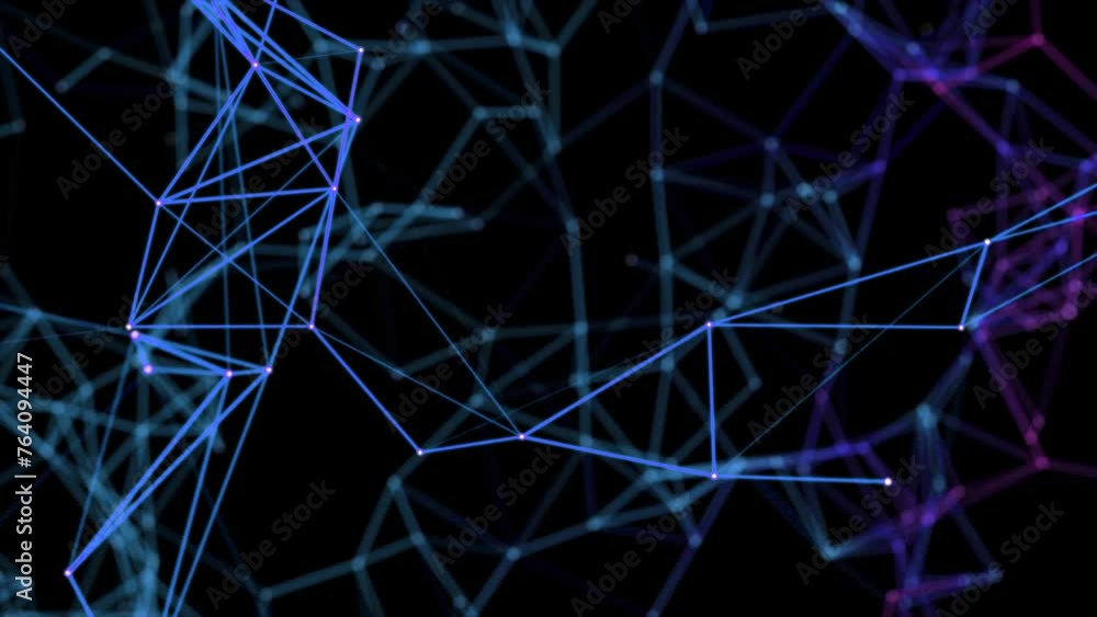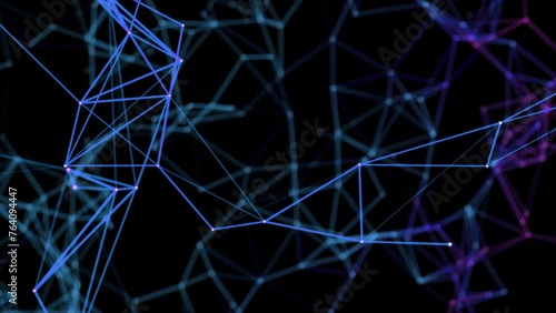 Wall mural : Abstract geometric futuristic background with intertwined lines, dots and triangles - digital technol