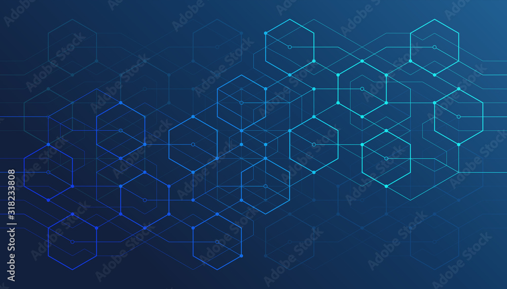 Wall mural abstract geometric lines. connection and social network. concept with lines and dots. minimalistic d