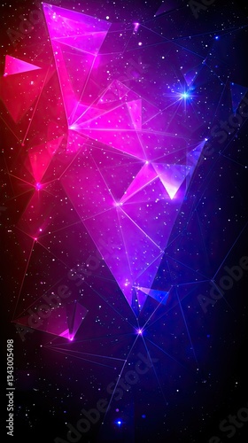 Wall mural : Abstract geometric network of interconnected triangles in purple and red space for graphic design