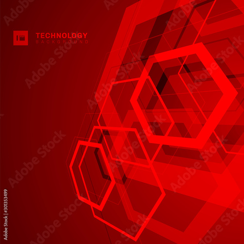 Wall mural : Abstract geometric overlapping hexagon shape technology digital futuristic concept perspective red b