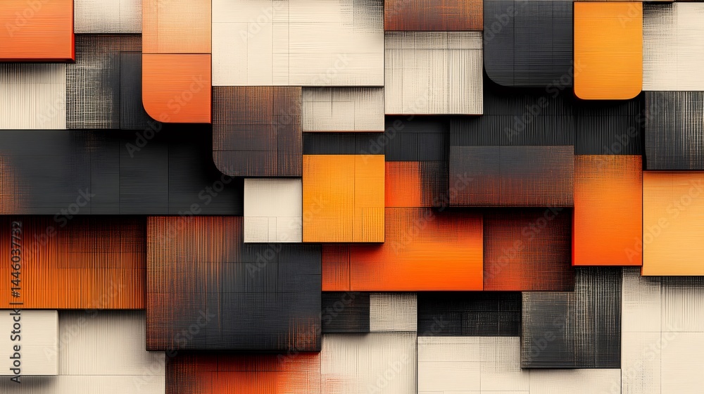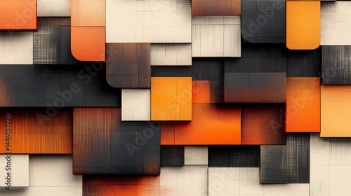 The watermark will not be included on Wall mural.: Abstract geometric pattern creating textured background with orange and black squares
